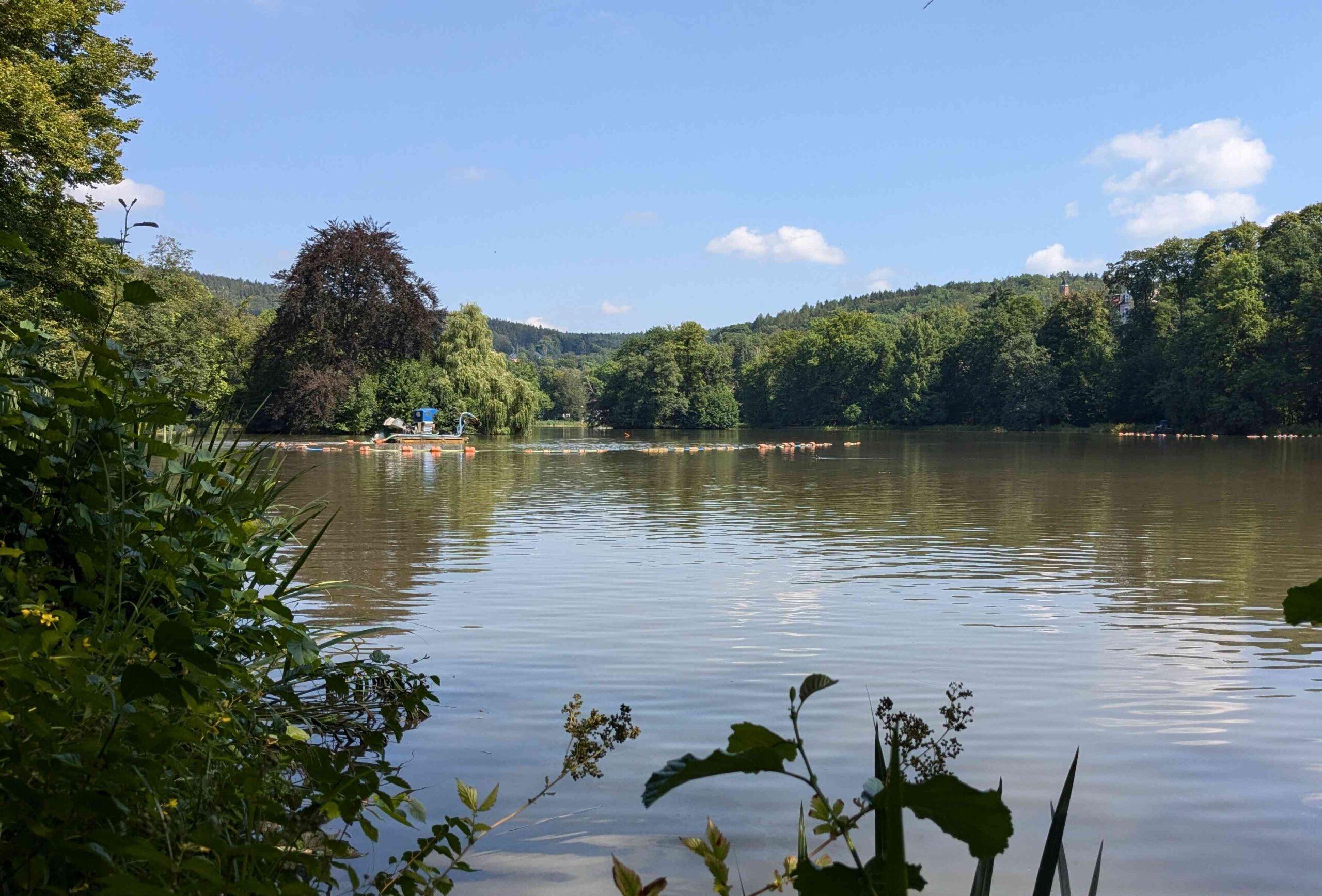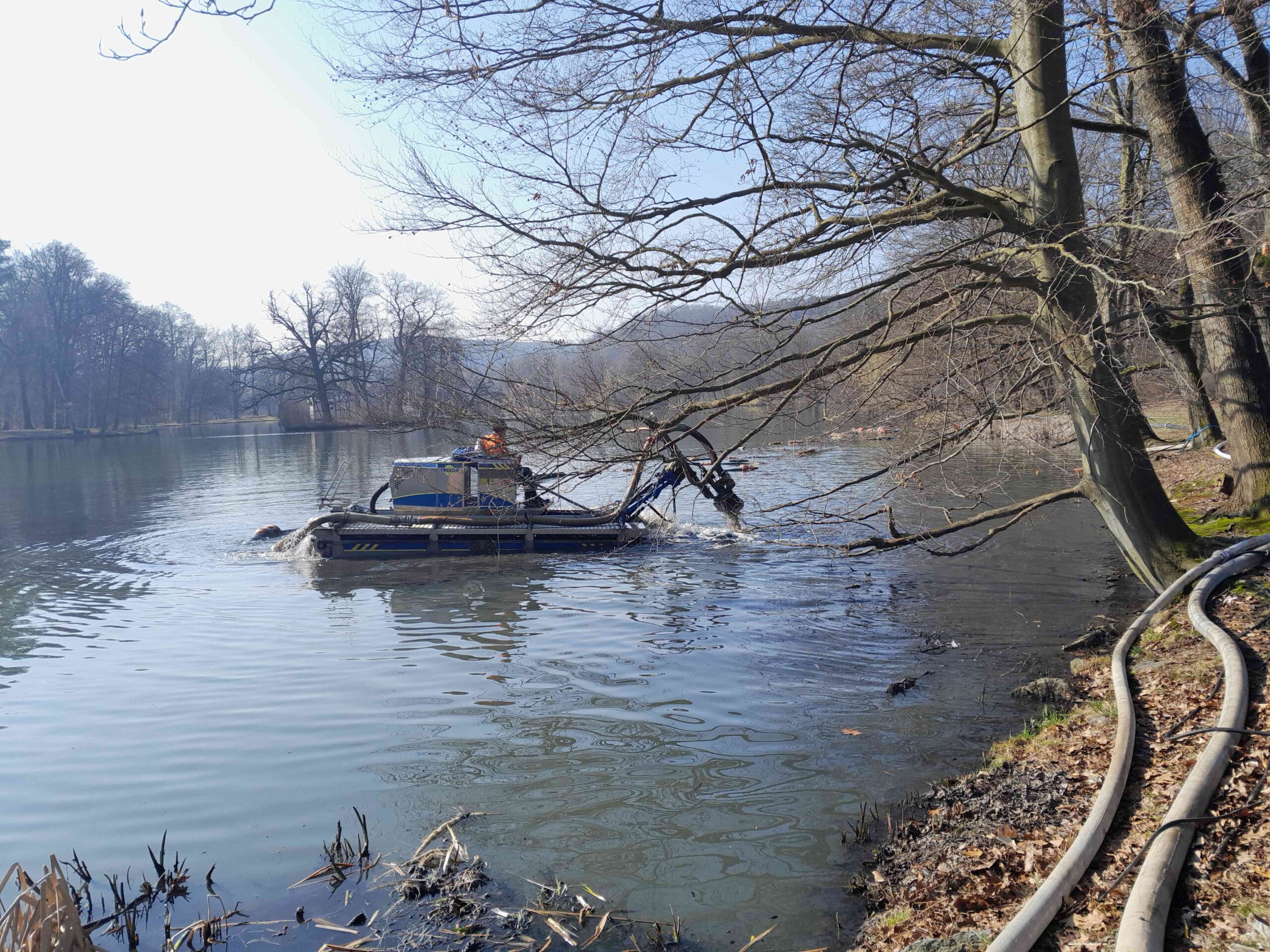 Foto: Schatzkammer Thüringen, Marcus GlahnWie alles andere in historischen Parkanlagen brauchen auch Teiche und Seen Pflege, dazu gehört alle paar Jahrzehnte das Entschlammen. Über die Zeit sammeln sich Sedimente und Pflanzenmaterial auf dem Seeboden an. Durch das geringer werdende Wasservolumen erhöht sich die Anfälligkeit für Temperaturschwankungen. Außerdem reichern sich Nährstoffe an, was beispielsweise Blaualgenbefall begünstigt. Der See kann Umwelteinflüsse weniger gut bewältigen und die Gefahr des Umkippens steigt.