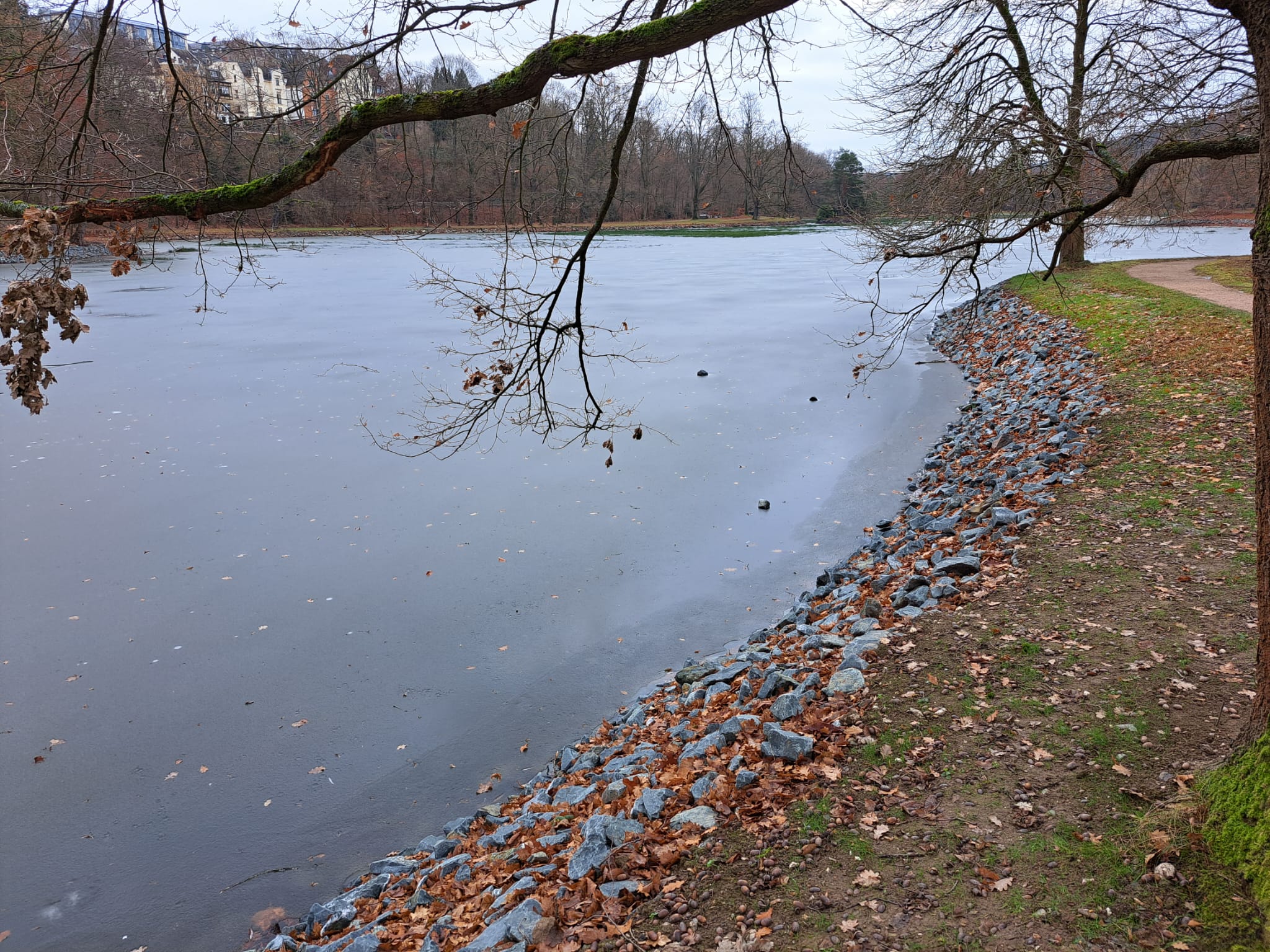 Die Uferbefestigung des Greizer Parksees hat ihre ganz eigene Geschichte. Nicht nur sind die Uferlinien so geschwungen, dass sie im Zusammenspiel mit den Gehölzpflanzungen immer wieder überraschende Ansichten eröffnen und der See nie in seiner ganzen Größe zu erfassen ist, sie stehen auch in besonderer Weise in Zusammenhang zum Bau der Eisenbahnlinie im 19. Jahrhundert.
