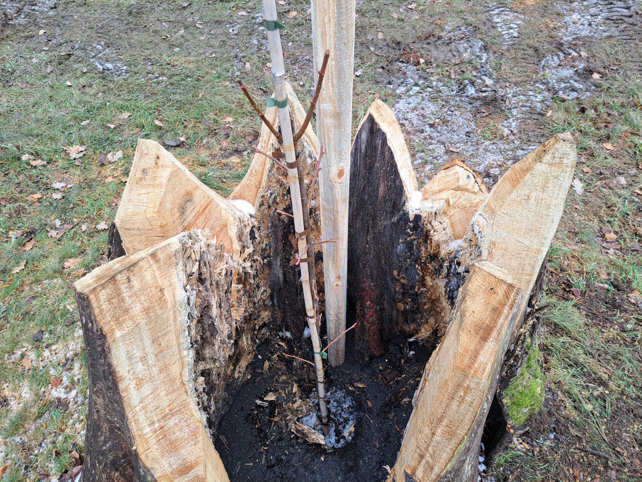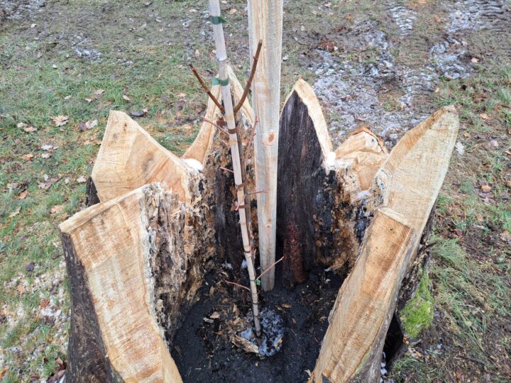 „Die Parkanlagen wurden einst durchkomponiert, dabei spielten auch Wuchsform, Laubfarbe oder Rindenbeschaffenheit der Gehölze eine wichtige Rolle. Durch die Verwendung von genetischem Material der teilweise rund 200 Jahre alten Linden können wir die besondere Charakteristik der Seufzerallee erhalten – ein wichtiger Faktor für den Erhalt des Parks als Gartendenkmal.“ Wie in der Gartendenkmalpflege üblich, wurden die Jungbäume in die ausgefrästen Stämme der Altbäume gesetzt, „das zeigt nicht nur an, dass hier eine Nachpflanzung erfolgt ist, der Stamm bietet den Jungpflanzen auch Schutz“, berichtet Hagner aus seiner langjährigen Denkmalpflegepraxis.