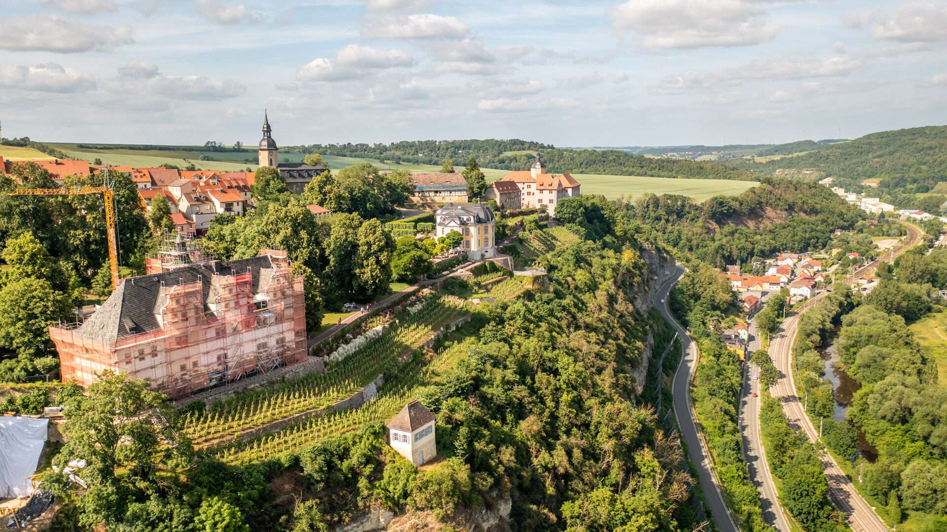 Foto: STSG, Philipp HortSowohl die Witterung, als auch das Alter und Umbauten im 20. Jahrhundert haben am Renaissanceschloss gezehrt. Konstruktive Verbindungen sind über die Zeit geschwunden. Ein Anbau aus der Zeit um 1800, in dem Goethe seinerzeit schon nach Ruhe und Inspiration suchte, driftet langsam ab. Seit Anfang des Jahres gehen jetzt Handwerker im beräumten Renaissanceschloss ein und aus. Auch sie dichten, aber im weniger literarischen Sinn. Die Arbeiten im Rahmen der Dachsanierung laufen auf Hochtouren. Aber auch die Fassaden und vor allem die Baukonstruktion stehen im Fokus der Sanierung.