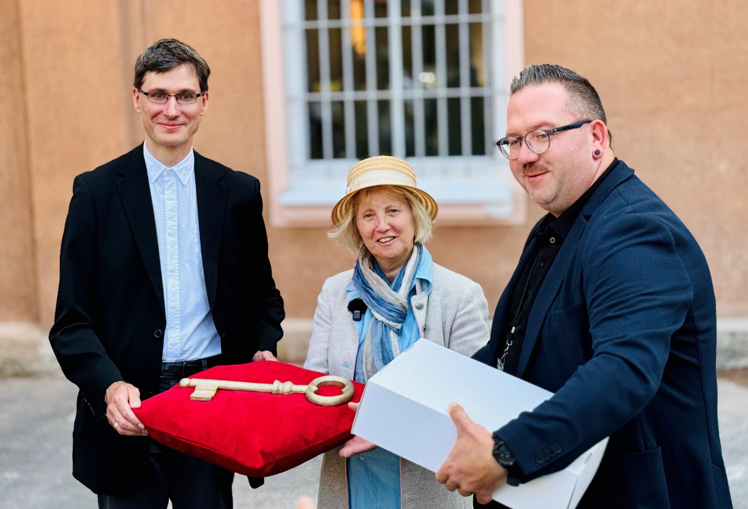 Foto: Schlüsselübergabe am Sammlungszentrum Henneberger Land, Dr. Frank Scholze, Dr. Doris Fischer, Ingo Weidig (v.l.n.r.), Foto: STSG, Uta KolanoPilotprojekt mit Vorbildcharakter