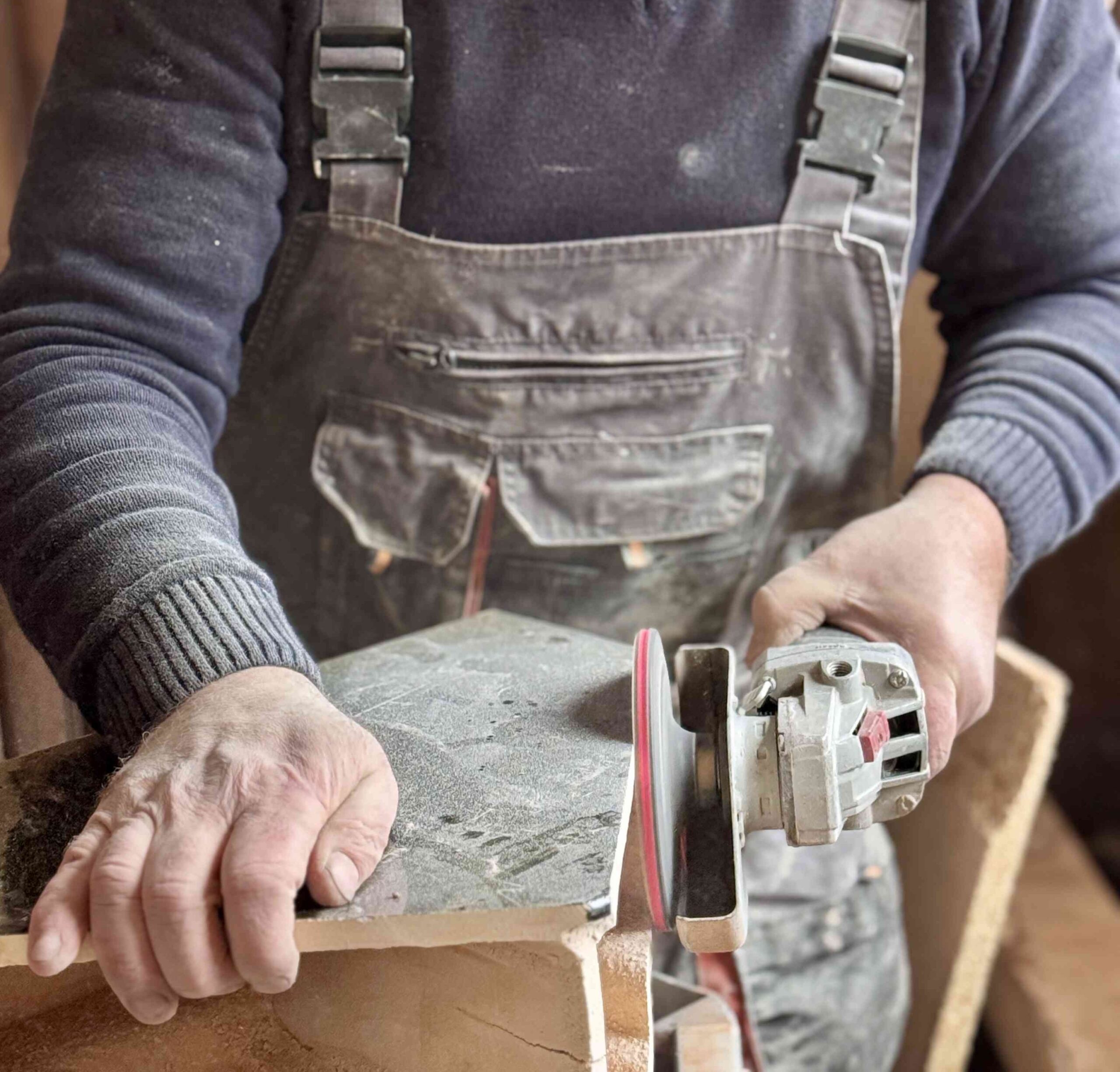 Vor Ort folgte abschließend die finale Maßarbeit. Zunächst wurde ein Fundament hergestellt, dann wurden der Corpus des Kamins durch den Ofenbauer neu aufgebaut und die Schmuckkacheln angebracht.