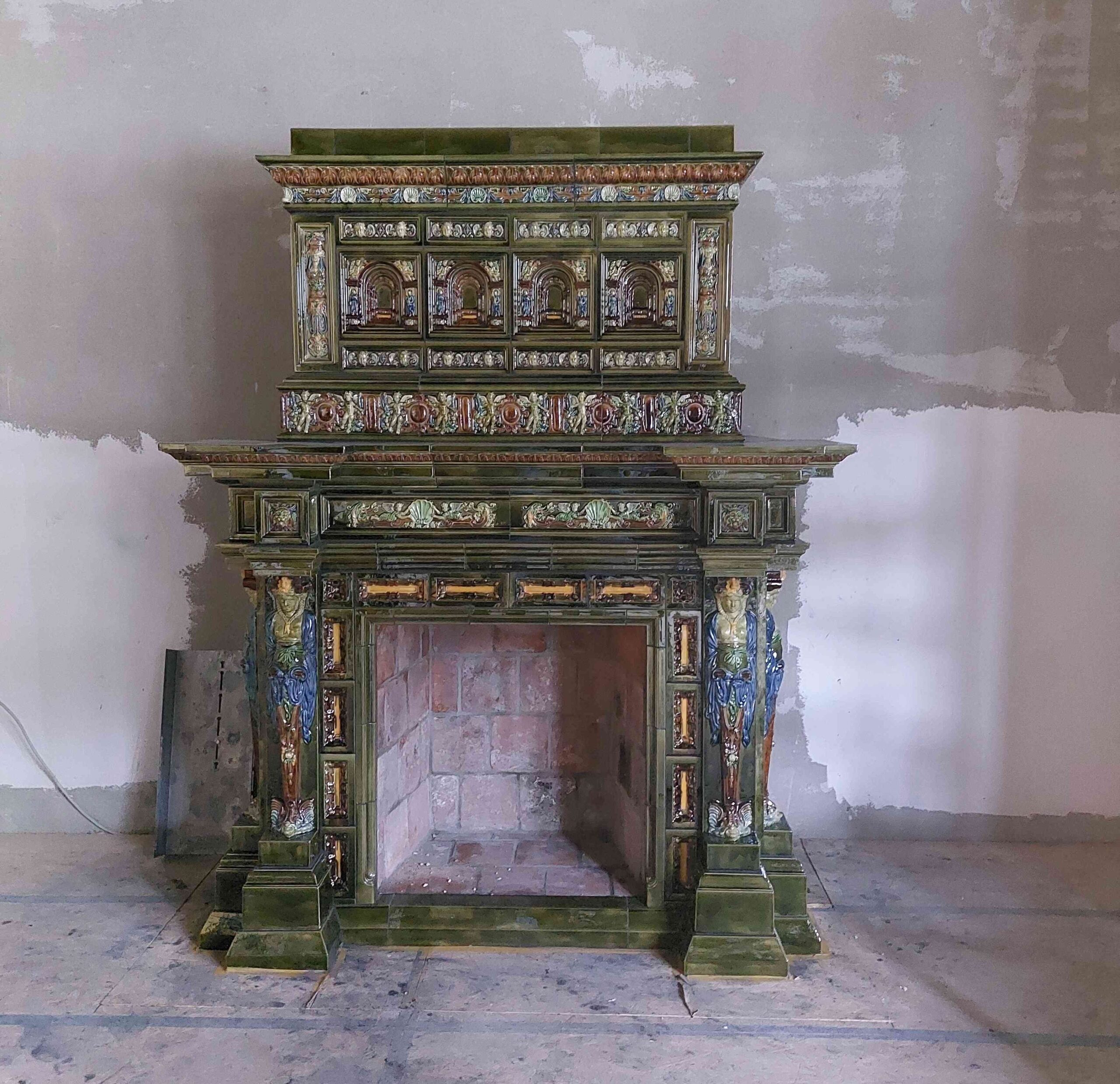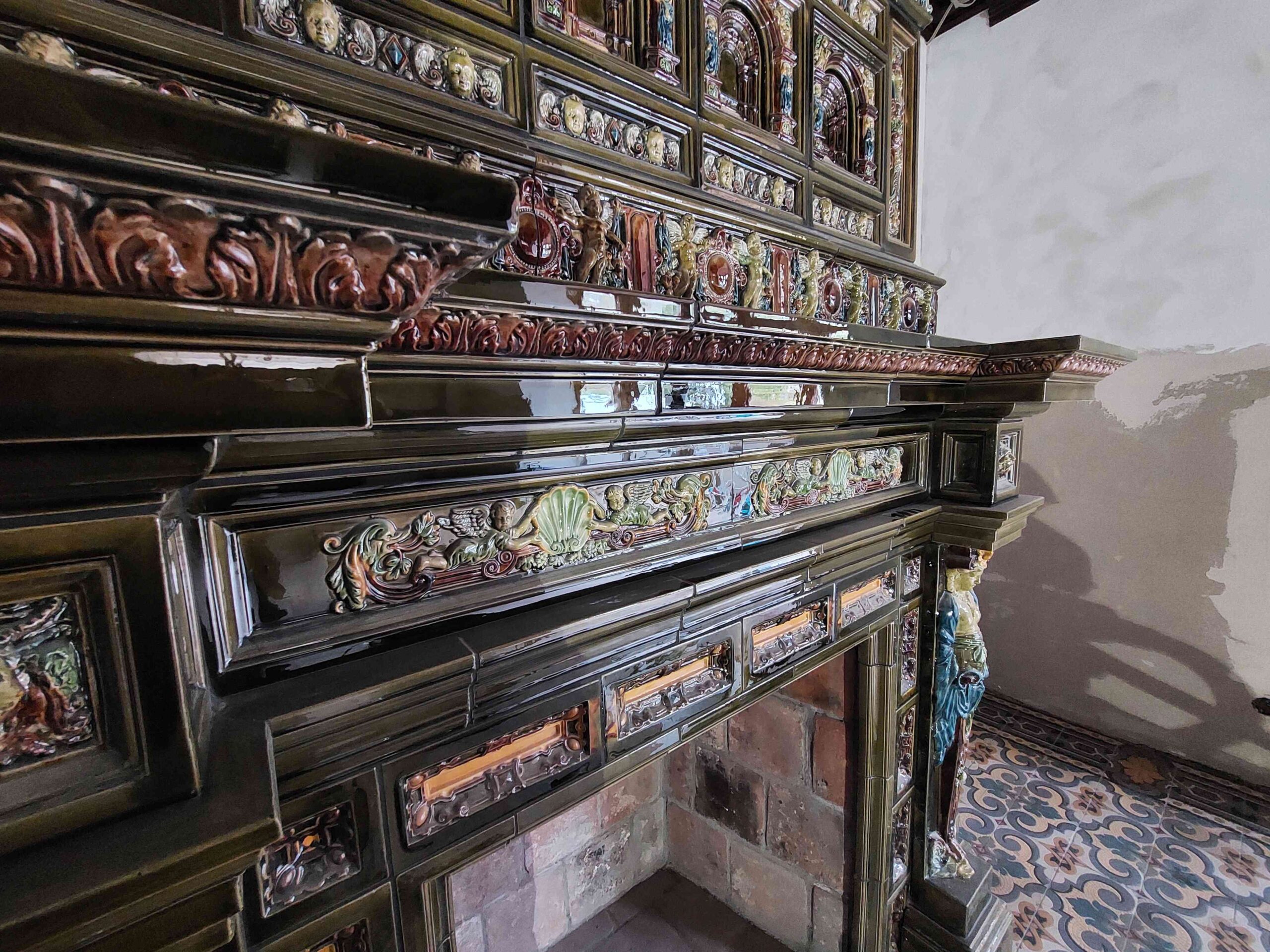 Wiederhergestellter Kachelkamin im Schloss Altenstein,